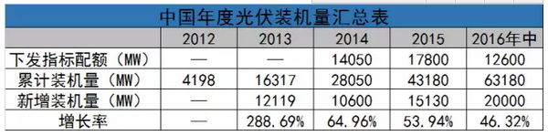 近期,太陽能行業(yè)咨詢公司發(fā)布研究報(bào)告:預(yù)測(cè)2016年光伏裝機(jī)量將高達(dá)76GW,而中國將以高達(dá)31GW的總裝機(jī)量繼續(xù)領(lǐng)跑全球光伏市場(chǎng)。而這也是中國自2013年以來,連續(xù)四年獲得光伏裝機(jī)總量的第一名。中國光伏企業(yè)在6月30日上網(wǎng)電價(jià)上調(diào)之前出現(xiàn)了搶裝潮,僅2016年上半年裝機(jī)量達(dá)到22GW,超過了2016年全年預(yù)設(shè)目標(biāo)18.1GW。